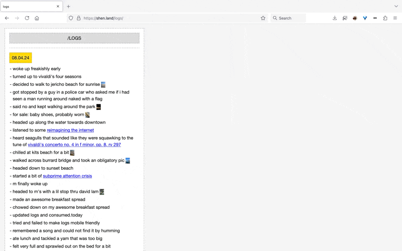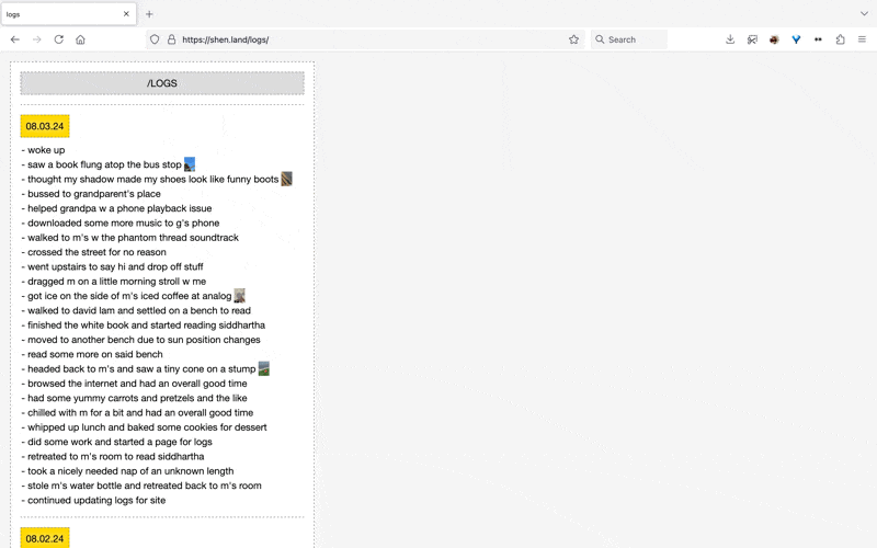 - 08.03.24 [18:09] - made a page for (probably) daily logs. not