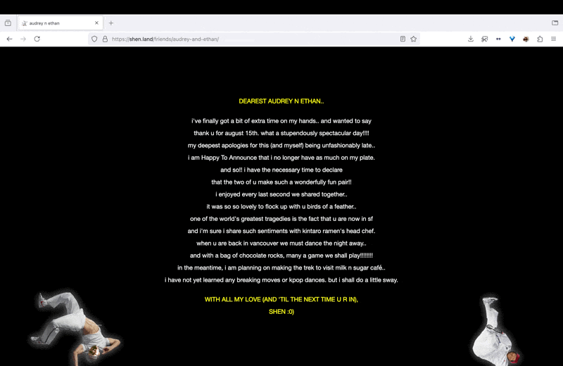 - 07.01.24 [23:15] - made a site for a n i's friendiversary. gatekeeping this one because it is for Her Eyes only